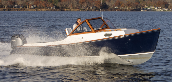 We’ve long been fans of the Wasque 26, a John Alden design from the 1950s that has classic downeast styling. With a sweetly curved sheer line and a bit of tumble home aft, the design harkens back to lobster boats of yore. The Wasque 26 was an early production fiberglass day boat that went out of production many years ago. In 2023 entrepreneur Ed Sutt purchased the molds and working with yacht designer Jeff Van Gorkum to stretch the hull to 28 feet and change the inboard engine for a single or twin outboards. The handsome teak windshield and cabin…