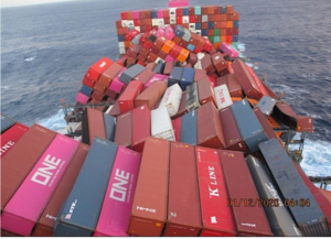It was in the largest weather-related container loss ever. Shipping authorities reported that 64 of the containers are labeled Dangerous Goods, including 54 that carried fireworks, eight with batteries, and two with liquid ethanol.