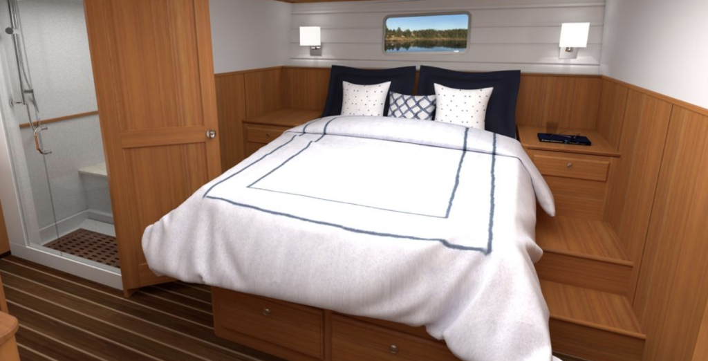At 56 feet, the new Hunt is the ideal size for an owner-operator who seeks both ease of handling and roomy comfort. Her layout is purpose-built for spending more time aboard, offering a balance of open entertaining spaces- a salon with views for days- and private retreats in two en-suite cabins and a convertible lower lounge that goes from morning office to overnight cabin in a flash.