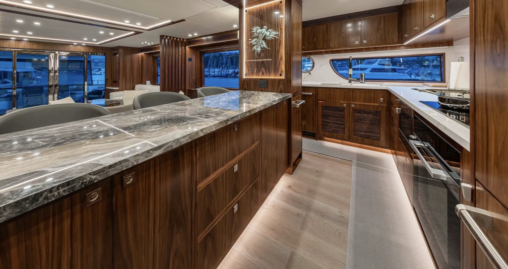 But, each 71 is an owner’s own unique yacht that reflects their personal style and cruising preferences. In the photos of the 71 number three, you can see the southwestern, Texas tastes of the new owners who hail from the Lone Star State. The net result for the 71 is that you get the efficiencies and proven systems of the basic boat combined with your own decor.