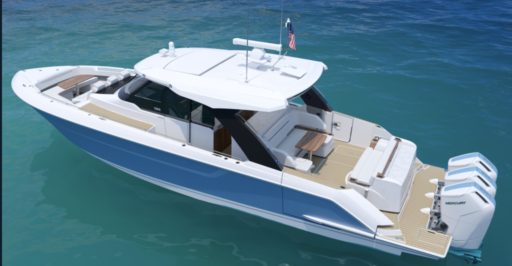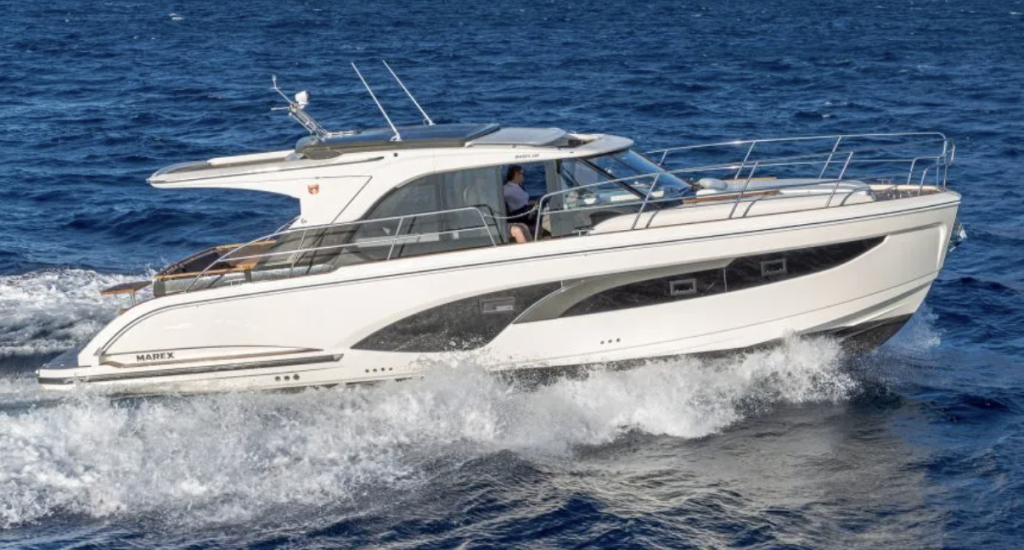 The new 38 Cross Cabin from this Finnish builder packs all of the builder’s outboard-driven performance DNA is a family cruising package with a difference. The new boat has a full salon and a large cockpit aft that. Is equipped with fold-down balconies on both sides. Wiuth walk-around decks, a forward lounge and sleeping cabins for four, this is one of the most unique new offerings for 2026. Read more here.