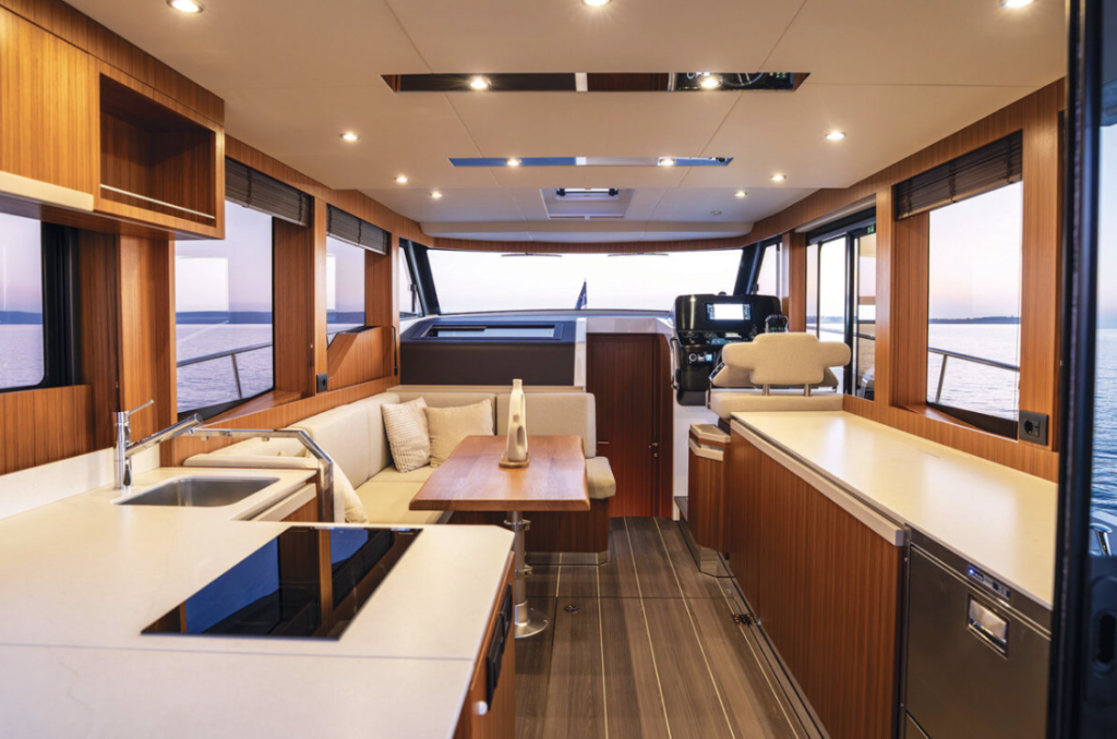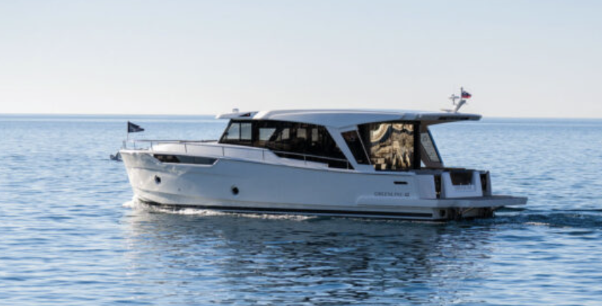 Greenline offers the 42 with three power packages. You can have a straight diesel drive. Or, you go with their advanced diesel-electric hybrid system. Or you opt for a fully electric power boat.