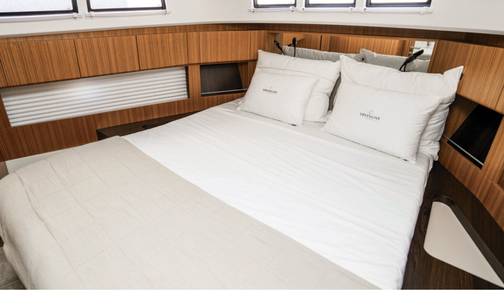 The new Greenline 42, which was introduced at boot Dusseldorf in January is the latest iteration of all these components. First it is noticeably larger than the 40-footer it is replacing. The cockpit and solon feel more spacious and the master cabin below could be on a 50-footer.