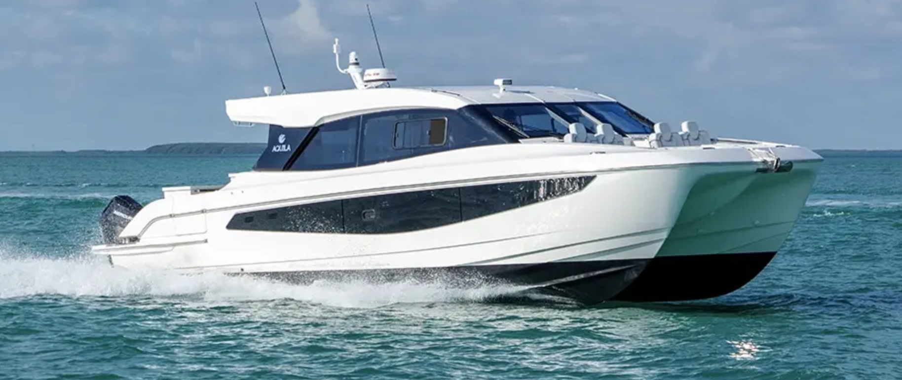 The world’s leading builder or recreational power cats, Aquila has proven year after year that they hear their customers and can deliver just what they want. So is the case with the new 42 Coupe which provides a large, enclosed salon instead of an indoor-outdoor space surrounded by canvas.